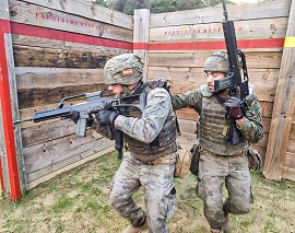 Cuatro miembros del 1er Regimiento de Tiradores del Ejército Francés asisten estos días al ejercicio que unidades de la COMGECEU desarrollan en Chinchilla de Montearagón, Albacete.