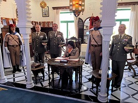 Al finalizar el acto, la Ministra firmó el Libro de Honor de la Unidad e inauguró una placa en recuerdo al cabo Palacios quien formaba parte de la sección de morteros del GREG 54, la cual ha sido colocada junto a la que hay en recuerdo del cabo Dris Amar.