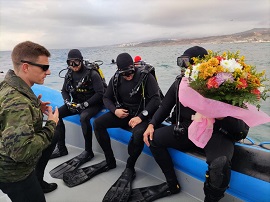 De esta manera, el Regimiento de Ingenieros Nº 7, que entre sus filas cuenta con su Pelotón de Navegación y Buceo, cuyo personal es buceador y también ha sido alumno de dichos cursos, ha decidido homenajear y rendir respeto a sus compañeros caídos en acto de servicio. Así pues, como no podía ser de otra manera, para dicho homenaje se realizó una inmersión y una ofrenda floral a la sumergida Virgen del Carmen de Ceuta, patrona de los buceadores.