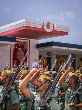 La Plana Mayor de Mando del Tercio junto a la escuadra de Gastadores, con la mascota Camarón, la banda de Guerra, Mando y Plana Mayor de Mando de la IV Bandera y la 2ª y 5ª Compañía, con el coronel jefe del Tercio al frente, fueron la representación de La Legión en la agrupación de paso específico que desfiló frente a su Majestad el Rey, Felipe VI.