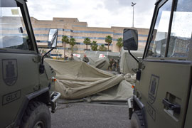 Despliegue del Puesto de Cirugía Ligero Avanzado y de material NBQ de la BRIMZ X por el 40 Aniversario del Hospital Universitario Reina Sofía.