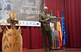 La lectura continuada ha comenzado a las 09:30h y ha finalizado a las 15:00h de este 23 de abril. Más de 500 personas han participado, y a través de los diferentes capítulos de esta obra universal, se han exaltado los valores que defiende Don Quijote y que a día de hoy siguen vigentes para los militares, como son el espíritu de sacrificio y el servicio y el honor.