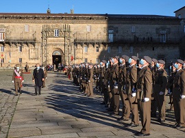 Previo al acto en la Catedral, el general Arrazola, Jefe del Mando de Apoyo a la Maniobra (MAM) y RIET en el acto, recibió novedades de la formación militar destacada en la plaza y que constaba de Compañía, Escuadra de Gastadores, Enseña Nacional y Banda de Guerra del Regimiento de Infantería "Isabel la Católica nº29", perteneciente a la Brigada de Infantería Ligera "Galicia VII", a la que acompañaba la Unidad de Música del Cuartel General del MAM.