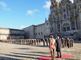 Posteriormente, la formación rindió honores al Delegado Regio, Xosé Antonio Sánchez Bugallo, Alcalde de Santiago de Compostela, quien pasó revista la Fuerza formada en la Plaza del Obradoiro acompañado del general Arrazola y el Capitán Jefe de la Compañía de Honores. A Continuación, la Fuerza abandonó la citada plaza y despidió la Enseña Nacional. FInalmente, el Delegado Regio, el RIET y los demás invitados se trasladaron a la catedral compostelana donde se desarrollaron el resto de actos.