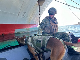 Por otra parte, cabe destacar el notable número de equipos caninos (K9) que han actuado en el ejercicio, tanto en Zaragoza como en Cartagena. En total han sido 34 perros procedentes de 7 países, incluidos los españoles, pertenecientes a la Guardia Civil, Policía Nacional y a las Fuerzas Armadas.