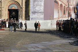 Previo al acto en la Catedral, el general Prada, Jefe del Mando de Apoyo a la Maniobra (MAM) y RIET en el acto, recibió novedades de la formación militar destacada en la plaza y que constaba de Escuadra de Gastadores, Enseña Nacional, Banda de Guerra y Compañía del Regimiento de Infantería “Isabel la Católica nº 29”, perteneciente a la Brigada de Infantería Ligera “Galicia” VII, a la que acompañaba la Unidad de Música del Cuartel General del MAM.