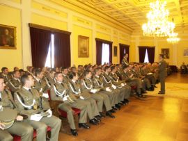 Una vez finalizados los honores el GE JEME se desplazó hasta el Salón de Actos de la Academia de Artillería donde se reunió con los alumnos de primer y tercer curso de la Enseñanza Militar para acceso a la Escala de Suboficiales en un primer momento, para posteriormente reunirse con los cuadros de mando.