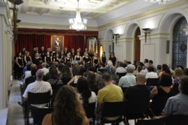 Nuevamente, el Salón del Trono de Capitanía fue escenario de cohesión de los granadinos con el Ejército. La Institución granadina desde su creación se ha comprometido en que sus instalaciones, siempre que se pueda, sean un escenario de encuentro con la cultura y la participación ciudadana. De este modo, el Domingo día 28 de junio a las 21:00, la sede del MADOC en Granada abrió sus puertas para el concierto del Coro Manuel de falla de la Universidad de Granada que interpretó una docena de piezas bajo la dirección de Purificación Cano. El aforo de la sala se completó para escuchar el excelente programa elegido para esta ocasión y que comprendió composiciones contemporáneas de Alfonso García, Javier Bustos, Silvio Rodriguez, A. Favero, Julio Dominguez, Carlos Guzman José A. Rincón y Jorge Villamil.