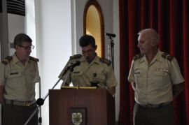 En primer lugar tomó la palabra el suboficial mayor Galtier quién destacó los planes de estudios de los nuevos sargentos, los títulos técnicos que se imparten y el nuevo Curso de Ascenso a brigada, como principales novedades. También, y con motivo del 75 aniversario del empleo de cabo 1º, destacó la cercanía y las virtudes que acompañan este empleo.