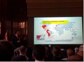 Con motivo del Día de la Fiesta Nacional, el coronel Víctor Bados Nieto tuvo la oportunidad de proporcionar a los 109 alumnos de 56 países que junto con él cursan estudios de Seguridad y Estrategia en el Royal College of Defence Studies (RCDS) en Londres, una conferencia sobre España, su historia y sus Fuerzas Armadas.