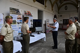 A continuación, visitó una exposición estática en la que pudo observar ejercicios de simulación para la instrucción y el adiestramiento, empleando modelos y escenarios muy parecidos a situaciones reales, que son una herramienta fundamental del apoyo a la enseñanza. Se le mostró la aplicación para consultar las instalaciones y medios de instrucción y adiestramiento disponibles en centros de adiestramiento y campos de maniobra y tiro dependientes de la Dirección de Enseñanza, y las plataformas “El Rincón de los Idiomas” y “El portal del conocimiento”. En el campo de la investigación se le presentó una serie de productos fruto del estudio, colaboración e investigación con los diferentes organismos, empresas y universidades, cuyo fin es completar y satisfacer aquellas necesidades operativas que van surgiendo ante las nuevas situaciones geoestratégicas, así como, publicaciones fruto del análisis tanto de la participación de las Unidades del Ejército de Tierra en operaciones y ejercicios, como de los conflictos actuales.