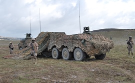 Posteriormente ver sus evoluciones en el Campo de Maniobras de Renedo-Cabezón, donde presencio ejercicios de tiro de precisión, tiro de morteros, y unidades proporcionando escolta en movimiento y seguridad de itinerario.