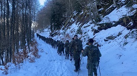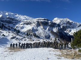 El personal del Cuartel General (CG) de la División “Castillejos” y de su Batallón de CG ha realizado una marcha invernal con raquetas el día 13 de febrero, como actividad de endurecimiento y cohesión en la zona de Candanchú. El objetivo principal era el de potenciar la preparación físico-militar del personal y mantener las actividades como mando de preparación en permanencia y operativo desplegable.