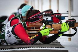La prueba de biathlon sprint disputada hoy, ha consistido en un recorrido de fondo de 10 km para hombres y 7,5 para damas en técnica libre y desnivel aproximado de 200 m. y una prueba de tiro con 2 entradas en el campo de tiro y 5 disparos por tirada, sobre un blanco de diámetro de 4’5 cm. para la posición de tendido y de 11 cm para el tiro en pie. Se penaliza por blanco no abatido con una vuelta de 150 m al circuito.