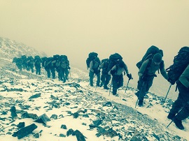 La parte de vida y movimiento no fue menos espectacular que la anterior. Cargados con equipo y comida para cuatro días, la columna partió del Embalse de la Sarra y terminó en Baños de Panticosa, destacando el cruce del Collado de Tebarray, a más de 2800 metros, el cual ya se encontraba cubierto de nieve, al igual que el pico Garmo Negro (3064m) también teñido de blanco.