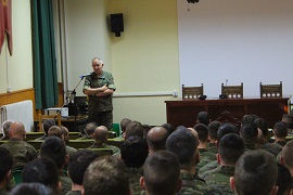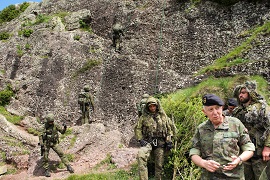 A continuación se reunió en el salón de actos con todo el personal del Regimiento donde incidió en la fortaleza moral como clave de la unidad y que ésta radica en tres pilares, la confianza en el mando, en nuestra preparación y en el material y los medios disponibles. Posteriormente se trasladó al escenario donde habitualmente esta Unidad desarrolla su instrucción técnica de montaña, en las inmediaciones de la estación invernal de Candanchú, donde presenció la ejecución de un tema táctico de combate de montaña estival.