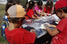 A continuación los escolares, guiados por personal del Batallón de Cazadores de Montaña "Pirineos", franquearon una pasarela de troncos, superaron los obstáculos de una pista de aplicación infantil, emplearon el localizador electrónico de víctimas de avalanchas, confeccionaron pan con medios de circunstancias y conocieron los vehículos tácticos de la Unidad.