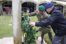 La ceremonia ha consistido en la entrega de una corona de flores en el Monolito a los Caídos depositada por el Coronel Vaquerizo y el General Frías, antiguo Jefe de la Brigada de Montaña, con formación de la Escuadra de Gastadores del Regimiento, la interpretación del toque de oración y la lectura de un responso. De forma espontánea, personal civil se ha unido a este Acto de Homenaje.