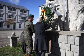 Enmarcado en el Acto a los Caídos que todos los meses celebra el Regimiento, se desarrolla el acto de imposición de la “boina de los Cazadores de Montaña”. Este día, la corona es depositada ante el monolito a los caídos por representantes de los familiares de los nuevos soldados.