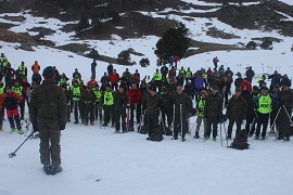 En un primer momento todos los participantes se dirigieron hasta una zona situada en la vertical del lugar del accidente, donde se ofició un responso. En esta ocasión las buenas condiciones meteorologicas y la estabilidad del manto nivoso permitió que parte de los participantes de la marcha llegaran al lugar del accidente, donde se erige un monolito en memoria de los 9 militares fallecidos, donde se depositó un ramo de flores. Mientras, otro grupo de participantes se dirigió al "Forau de Aigualluts", en el fondo del Valle de Benasque. De nuevo el refrán de "quien tuvo retuvo" cobró actualidad viendo las evoluciones del personal más veterano ascendiendo con esquís o raquetas integrados en las mismas columnas de marcha que el personal en activo.