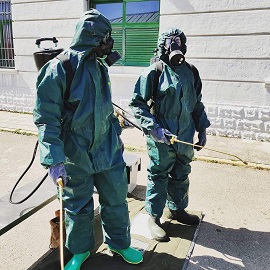 Para la realización de estas tareas se cuenta con los pulverizadores portátiles ATM-10 de dotación, así como con una máquina pulverizadora autónoma cedida por la USBAD “Oroel”, de mucha utilidad para la descontaminación de áreas amplias.