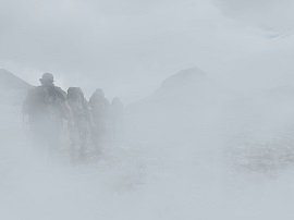 En esta ocasión, el enemigo se presentó en forma de densa niebla, dificultando la orientación, teniendo en consideración que en ocasiones en estas zonas no se dispone de cobertura GPS, por lo que el plano y la brújula, además del conocimiento del terreno, son las únicas herramientas de las que dispone el jefe de la patrulla abrehuellas para conducir a la unidad por el itinerario previsto.