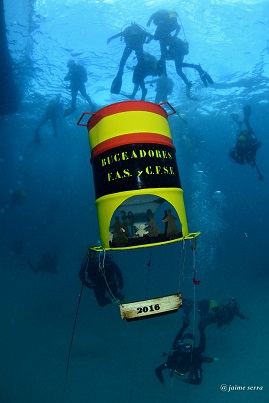 El bidón-belén fue bendecido por el Sacerdote Castrense, antes de sumergirlo a 12 metros, donde permaneció entre 2 aguas durante unas horas. Posteriormente se celebró una comida de compañerismo entre los participantes, familiares y amigos en un ambiente navideño.