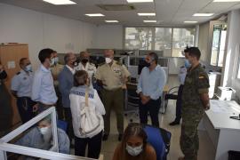 Acompañado por el Delegado de Defensa en Illes Balears, el Jefe del Sector Naval y el Jefe del Sector Aéreo, fue recibido por el Director General del IB-Salut, D. Juli Fuster Culebras, quien tras realizar las presentaciones realizaron una visita por todas las instalaciones de las que disponen como InfoCovid o las estaciones de rastreo.