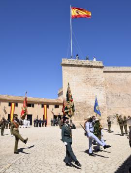 El acto, presidido por el Comandante General de Baleares D. Fernando García Blázquez y acompañado por la Presidenta del Govern Dª. Francina Armengol y Socias, contó solo con la presencia de las principales autoridades de la isla para dar cumplimiento a la normativa actual de Covid-19. Se realizó en el Castillo Museo Militar de San Carlos de Palma, y consistió en un izado de la Bandera Nacional y un homenaje a los que dieron su vida por España, con un especial recuerdo a los fallecidos por causa de la pandemia. Formó una unidad de honores reducida, en la que se integró personal del Ejército de Tierra, Armada, Ejército del Aire y Guardia Civil, así como personal militar con uniforme de época.