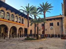 Así el pasado 6 de enero, a las 10.30 horas, se celebró en el Palacio de la Almudaina en Palma de Mallorca, bajo la presidencia del Comandante General de Baleares Excmo. Sr. D. Fernando García Blázquez, designado por Su Majestad el Rey para ostentar su representación en las Islas Baleares, la Pascua Militar, acto en el que formó un piquete compuesto por integrantes del Ejército de Tierra la Armada, del Ejército del Aire y de la Guardia Civil, y que consistió en la rendición de honores de ordenanza al Comandante General, imposición de las corbatas de la operación “Balmis” a los guiones del RINF Palma 47 y de la Unidad de CG, imposición de condecoraciones al personal merecedor de dichas recompensas y alocución del Comandante General. Estuvieron presentes las primeras autoridades de la isla.