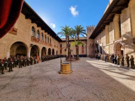 Posteriormente se trasladaron a la isla de Mallorca donde a las 12:00 horas tuvo lugar en el Palacio de la Almudaina en Palma de Mallorca acto en el que formó una sección compuesta por integrantes del Ejército de Tierra, la Armada, del Ejército del Aire y del espacio y de la Guardia Civil, que inició con la incorporación de la Enseña Nacional, rendición de honores de ordenanza al Comandante General, imposisción de condecoraciones, alocución del Comandante General y desfile de la fuerza frente al Palacio de la Almudaina, dando así por finalizada la celebración de la Pascua Militar en Baleares.