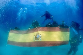El pasado sábado 25 de mayo, con motivo del Día de las Fuerzas Armadas, la Sección de buceo del Centro Deportivo Socio Cultural Militar de Mallorca (CDSCM), desplegó la Bandera nacional bajo el agua, en una inmersión junto al núcleo de Illetas (dependiente de ese centro).