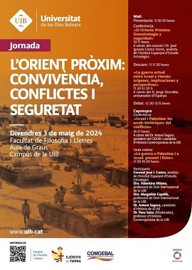 El pasado día 3 de mayo, en la Facultad de Filosofía y Letras de la Universidad de las Islas Baleares (UIB), tuvo lugar la jornada sobre “El oriente próximo: convivencia, conflictos y seguridad” , organizada por la UIB y la Comandancia General de Baleares.