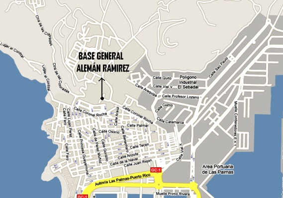 La Base Militar “General Alemán Ramírez” se encuentra en la Zona Militar de la Isleta C/ Coronel Rocha S/N, 35009 (Las Palmas) de Gran Canaria.