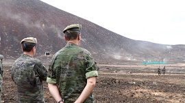 Posteriormente, en el Cuartel General de la Brigada "Canarias" XVI, asistió a una presentación sobre la situación de la misma, realizando a continuación un recorrido por las instalaciones del Campo de Tiro y Maniobras de "La Isleta" donde pudo comprobar de primera mano el nivel de adiestramiento y operatividad con el que cuentan las unidades de la Brigada ubicadas en la isla de Gran Canaria.