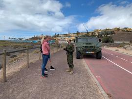 El General Jefe de la Brigada "Canarias" XVI visita a los equipos de desinfección y a las patrullas.
