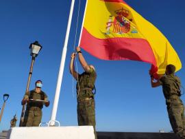 El sencillo acto, similar en todas las islas, ha consistido en la formación de un piquete de honores, el posterior arriado de la Bandera Nacional y la interpretación del tradicional “toque de oración”, en homenaje a los fallecidos. El toque de oración tiene su origen en la batalla de “Ceriñola”, en 1503, cuando el Gran Capitán al observar el campo de batalla cubierto de muertos franceses ordenó que a partir de ese día y a la puesta del sol se rindiera homenaje a los caídos. Desde entonces en todas las unidades militares se celebra diariamente el arriado de bandera y el toque de oración.