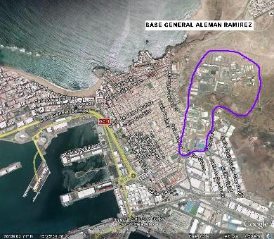 Para acceder a la Base con vehículo particular se debe seguir la Avenida Marítima hasta la rotonda de Belén María tomando la salida a la calle Atindana girando a la izquierda por la calle Tecén y después a la derecha por Roque Nublo hasta llegar a la calle Coronel Rocha.