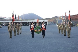 Finalmente y una vez se arrió la Bandera por artilleros vestidos con uniformes de época, se rindió homenaje a los que dieron su vida por España, cerrando el acto el desfile de la fuerza ante la autoridad.