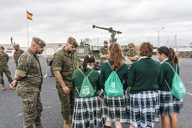 Tras la presentación, los alumnos recorrieron las instalaciones de la Base, destacando la visita al museo del Regimiento donde se les hizo una breve reseña de la historia de la Artillería en Gran Canaria, siendo finalmente trasladados a la explanada de la Base “General Alemán Ramírez”, donde les esperaba una demostración dinámica y una amplia exposición estática del material Antiaéreo.