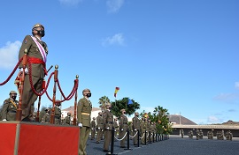 En el patio de armas de la Base “General Alemán Ramírez”, tuvo lugar el acto castrense presidido por el General Jefe de la Brigada “Canarias” XVI, Excelentísimo Sr. D. Ramón Armada Vázquez. En este acto intervino una formación al mando del Capitán D. Miguel Angel De Blas Repila, compuesta por Escuadra de Gastadores del RI Canarias 50, Banda de Guerra n.º 1 de la Brigada “Canarias” XVI y una Compañía de honores del Batallón de Infantería “Ceriñola” I/50. A diferencia de años anteriores, no se ha permitido la asistencia de autoridades civiles ni familiares, y la asistencia a todo personal Militar ajeno a la celebración se ha restringido al máximo. Durante el acto se respetaron en todo momento las distancias y medidas de protección sanitaria en vigor.
