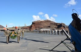 A la finalización del homenaje a los caídos, con el ardor guerrero vibrando en nuestras voces, fue recitado el espíritu de Patriotismo del Ideario de la Brigada “Canarias” XVI, exaltando el servicio a España como vocación y guía de los miembros de la Brigada. El compromiso de la Unidad también se recitó, reafirmando una vez más el compromiso de Servicio a España, trabajando con sacrificio y valor. También se cantó el himno de Infantería, prometiendo ser fieles a la historia de España y dignos del honor y de la gloria de la Patria. El acto finalizó y se dieron por concluidos los actos conmemorativos del 435 aniversario en honor a nuestra Patrona la Virgen de la Inmaculada Concepción con el desfile de la Fuerza y la Enseña Nacional ante las autoridades y el personal asistente.