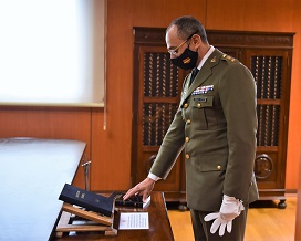 El acto de Juramento del cargo y firma de la Cedula de Toma de Posesión, tuvo lugar en la sala de Banderas del Regimiento de Infantería “Canarias” 50.