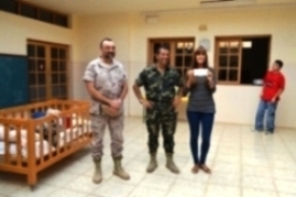 En el acto simbólico estuvo presente el Coronel Leiva, Jefe del Regimiento de Infantería Ligera “Soria” nº 9, que, con el Presidente del Club Deportivo Soria 9, D. Gregorio Hernández Fernández, como representantes de la organización de la carrera ciclista en MTB cívico-militar “FudeNaS” (Fuerteventura de Norte a Sur), hicieron entrega a la Directora del C.E.E de un donativo por valor de 1.000 Euros.