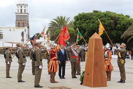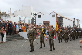 El acto continuó con el Homenaje a los Caídos, ofrenda de una corona de flores ante el monolito a cargo del teniente general Carlos Zaforteza, y el alcalde de Teguise Oswaldo Betancort, y finalizo con el desfile de la fuerza por las calles de la Villa de Teguise.