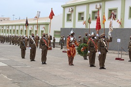 El acto continuó con una alocución del coronel Guevara a los presentes y tras finalizar esta comenzó el Homenaje a los que dieron su vida por España, el compromiso de la Unidad, la entonación del himno del Regimiento y finalizó con el desfile de las Unidades participantes.