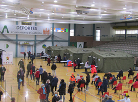 Dicho apoyo ha consistido en la instalación de 4 tiendas polivalentes UTILIS TM-36, equipo de iluminación, electricidad, mesas, sillas y camillas. El personal del GALCA I/63 se ha trasladado hasta las inmediaciones del citado polideportivo y ha procedido al montaje del material. Asimismo, se ha proporcionado apoyo de ocho militares, que realizaron labores de control de acceso, toma de temperatura de los pacientes y de ayuda al personal de movilidad reducida facilitando con ello, las labores del personal sanitario en la vacunación contra el COVID 19 de las personas citadas de todos los municipios de la zona básica de Astorga, nacidas entre los años 1942 y 1948.