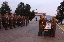 Posteriormente los jefes de compañía y de sección hicieron la entrega de la Bandera de Mochila, que pretende mantener en el recuerdo de los Alumnos la Academia en la que por primera vez estuvo unida la totalidad de la promoción, en la que realizaron el Juramento a la Bandera de España como futuros suboficiales del Ejército de Tierra y en la que, tras la superación de los diferentes planes de estudios, recogerán los merecidos Reales Despachos de Sargento.