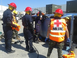 Ejercicio de excarcelación de un accidente de circulación en la Base Miguel de Cervantes.