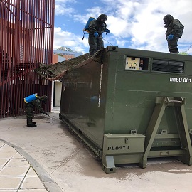 La Agrupación de Apoyo Logístico Nº11 participa en la desinfección y desmontaje de los apoyos prestados por la Agrupación en el Hospital 12 de Octubre en Madrid.